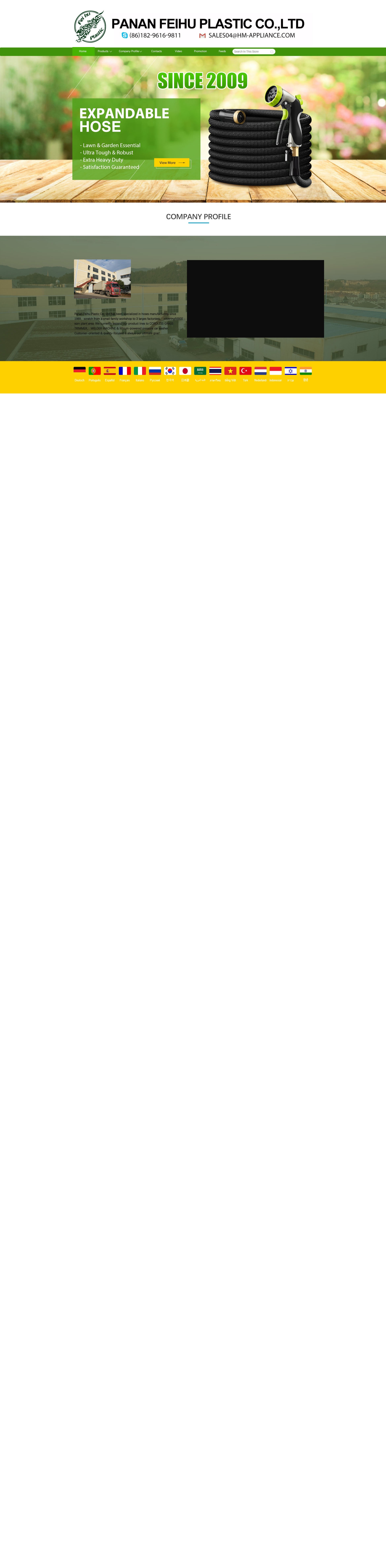 Panan Feihu Plastic Co.. Ltd, has been active in flexible Hose manulacture lor more than 20 years, Establishedin 2009 in Jinhua, China, FElHU developed from a traditional small processing enterprise to a medium-sized enterprise with nearly 500 employees, Specializing in manufacturing and developing high quality plastic hose and othar new idea hose products,FElHU have two factories with an area of 50000 square meters, The second phase is planned to cover more than 40000 square meters, Feihu plastic mainly produce plastic hoses, The annual sales of garden hose is more than 30 million dollars.